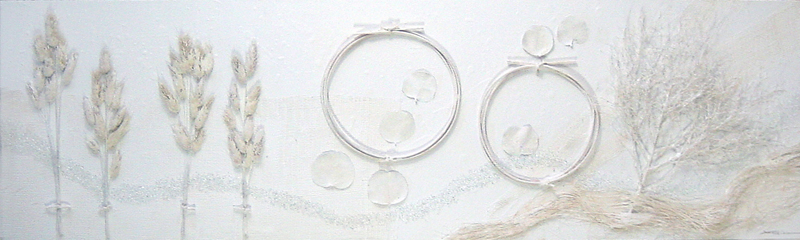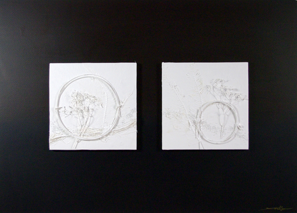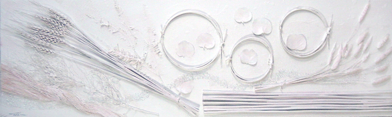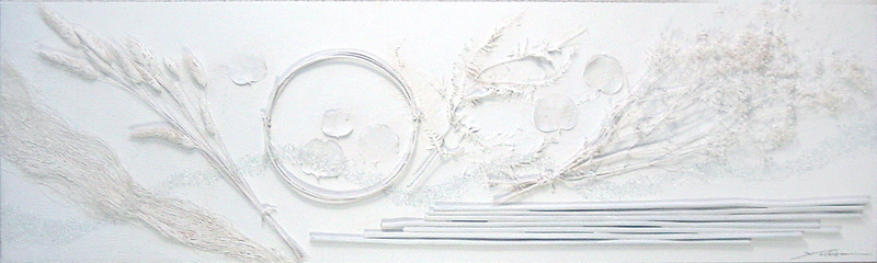 オブジェ、ペーパークラフト、自然素材のコラージュなどのクラフト作品の画像データです。